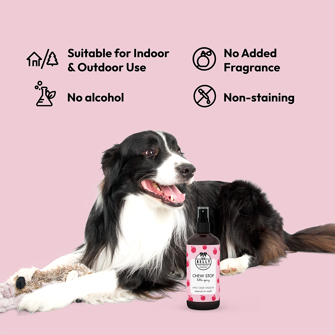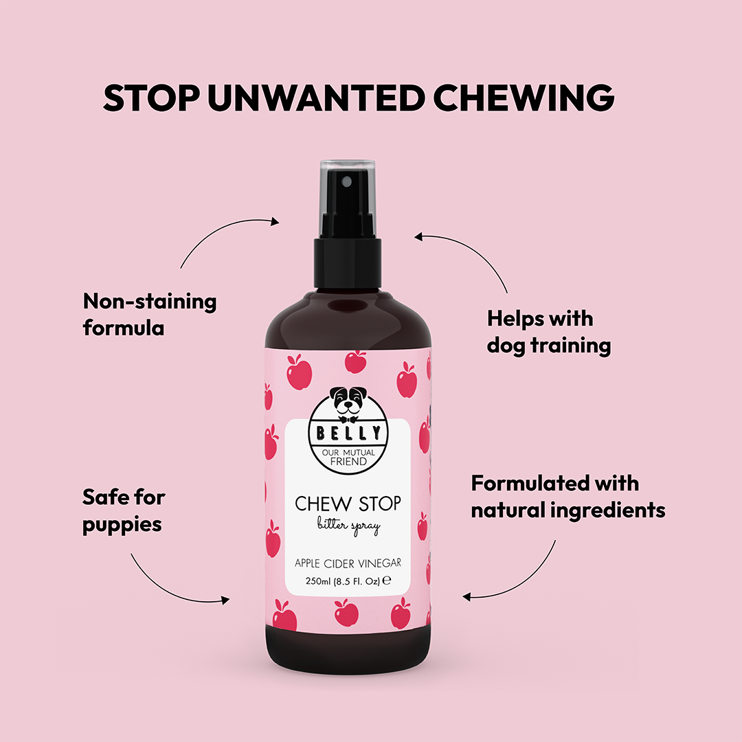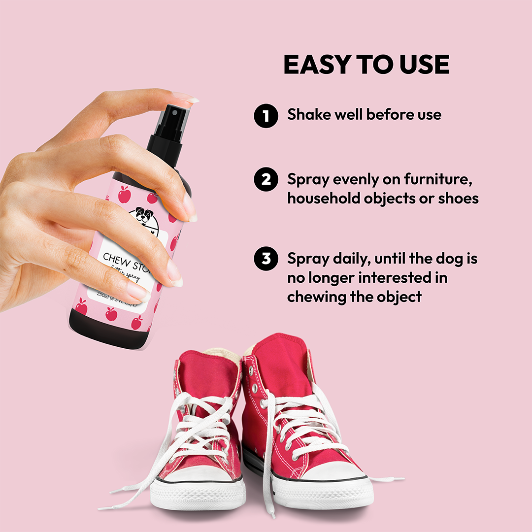Chew Stop helpt honden te ontmoedigen om op meubels, elektrische snoeren, schoenen en kleding te kauwen.